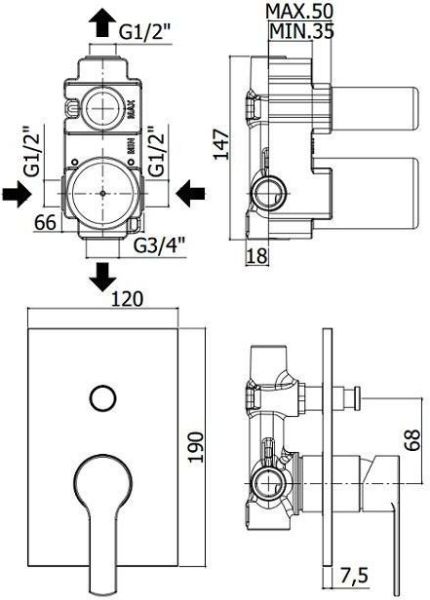 Комплектация:Смеситель на 2 выхода с накладкой ABS