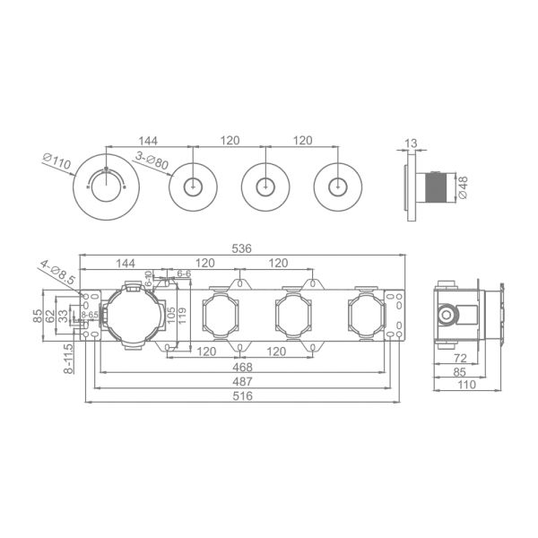 Корпус смесителя + внутренняя часть Raglo R20.263, 3-режима, хром. Встраиваемый монтаж. Термос... Подробнее
