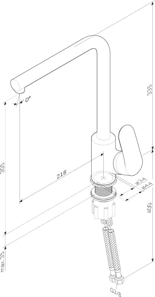 • Высота смесителя: