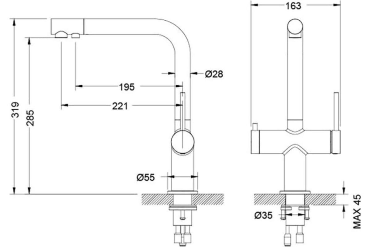 - Выдвижной излив:нет