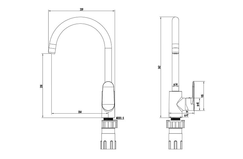 • оснащен высоким изливом, подходит для большинства кухонных моек