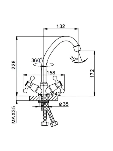 Поворотный излив 17,2 см — удобно мыть крупную посуду и наполнять высокие ёмкости