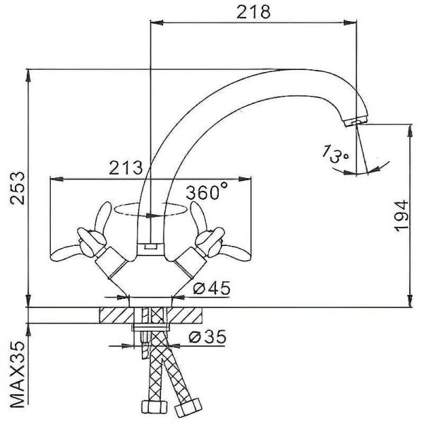 Смеситель для кухни Frap H12 F4212. Характеристики: