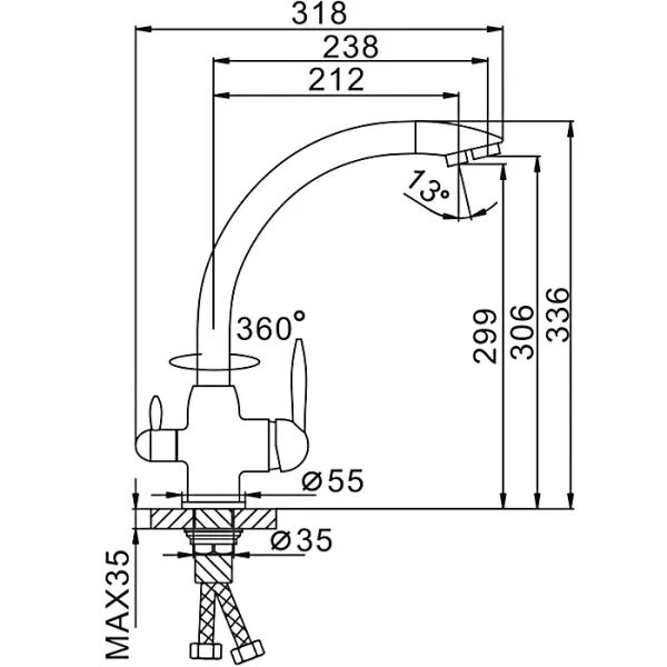 - Гибкий излив:нет