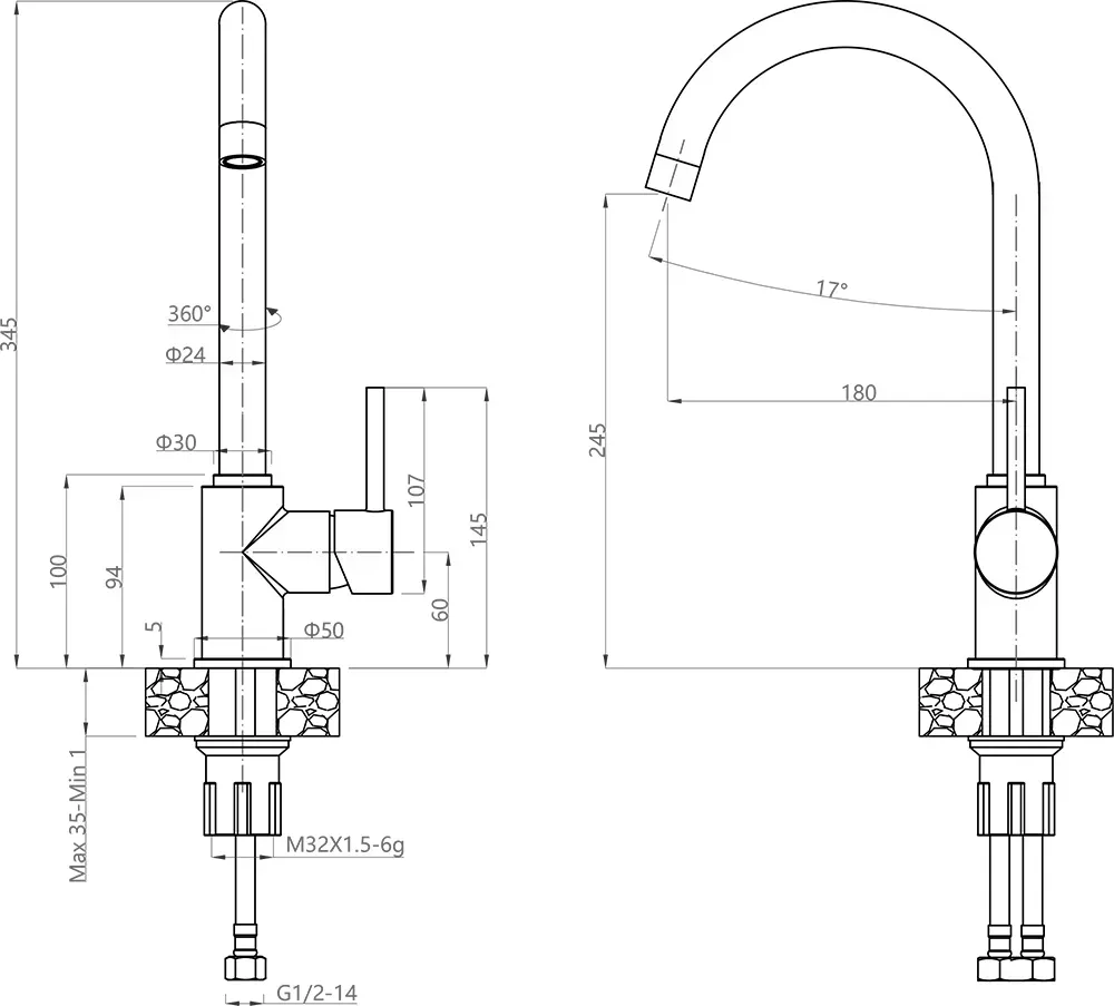 • Высота смесителя: