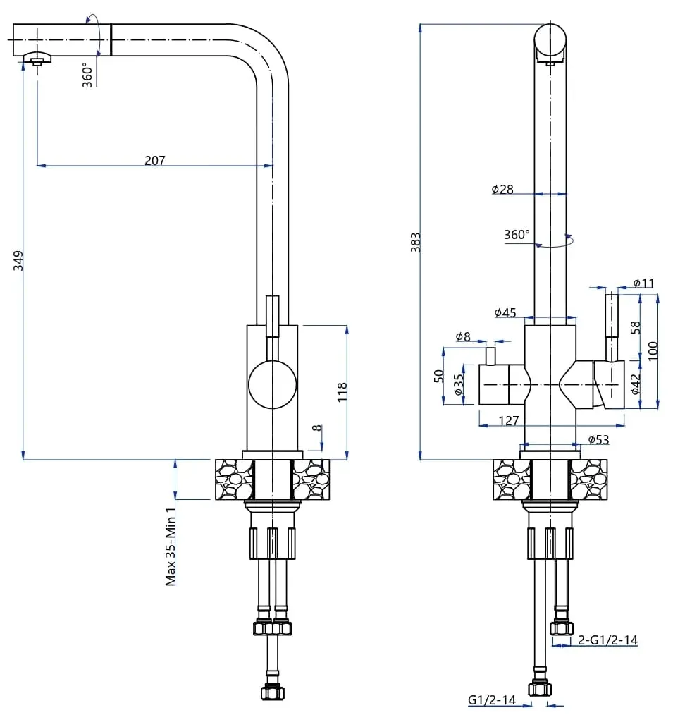 Комплектация: гибкая подводка 60 см Ø 1/2"", тех.паспорт, гарантийный талон."