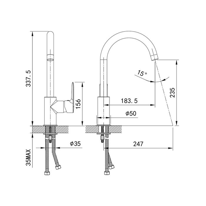 • Высота смесителя: