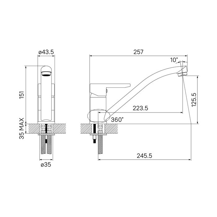• Гибкий излив: