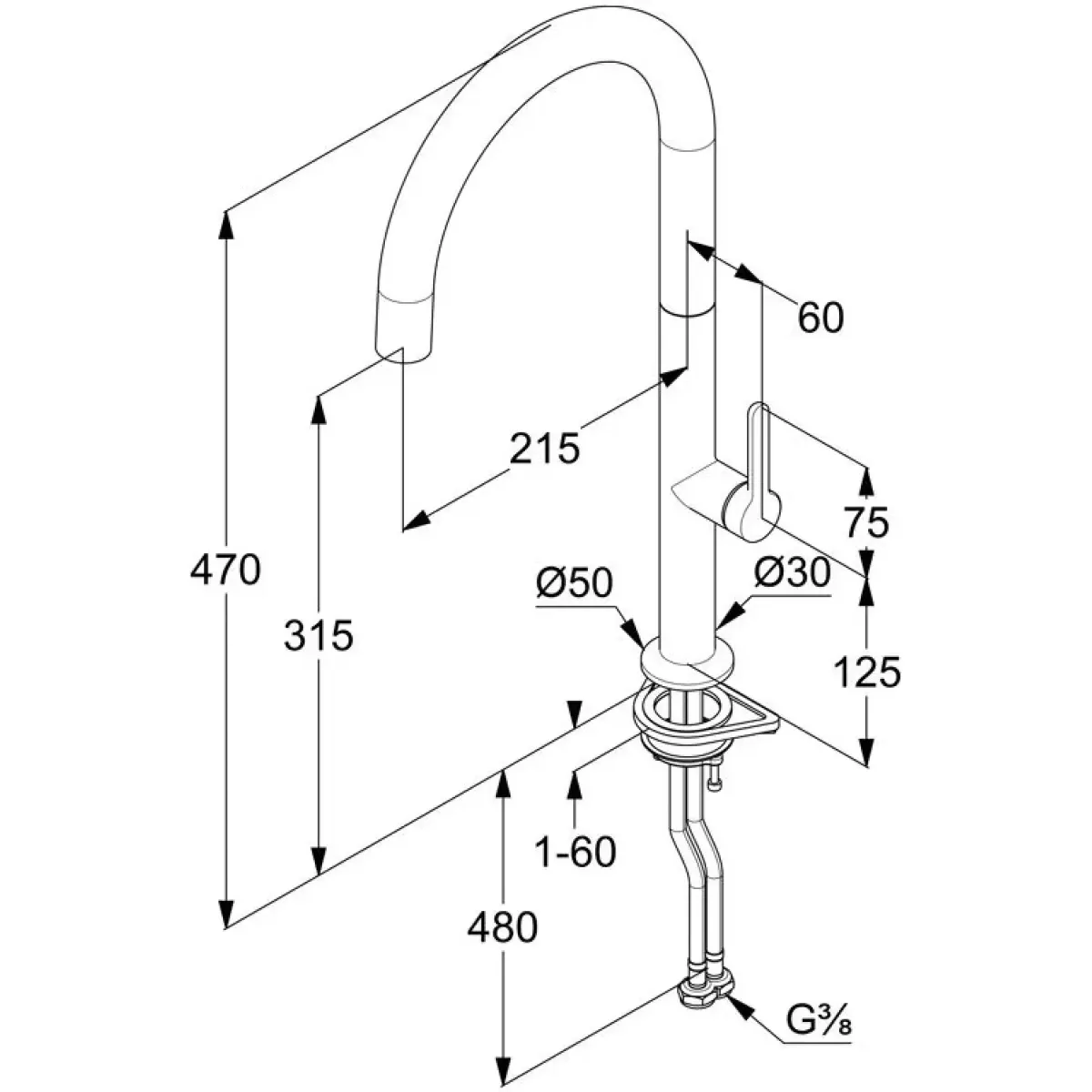 • Длина излива: 21.5 см