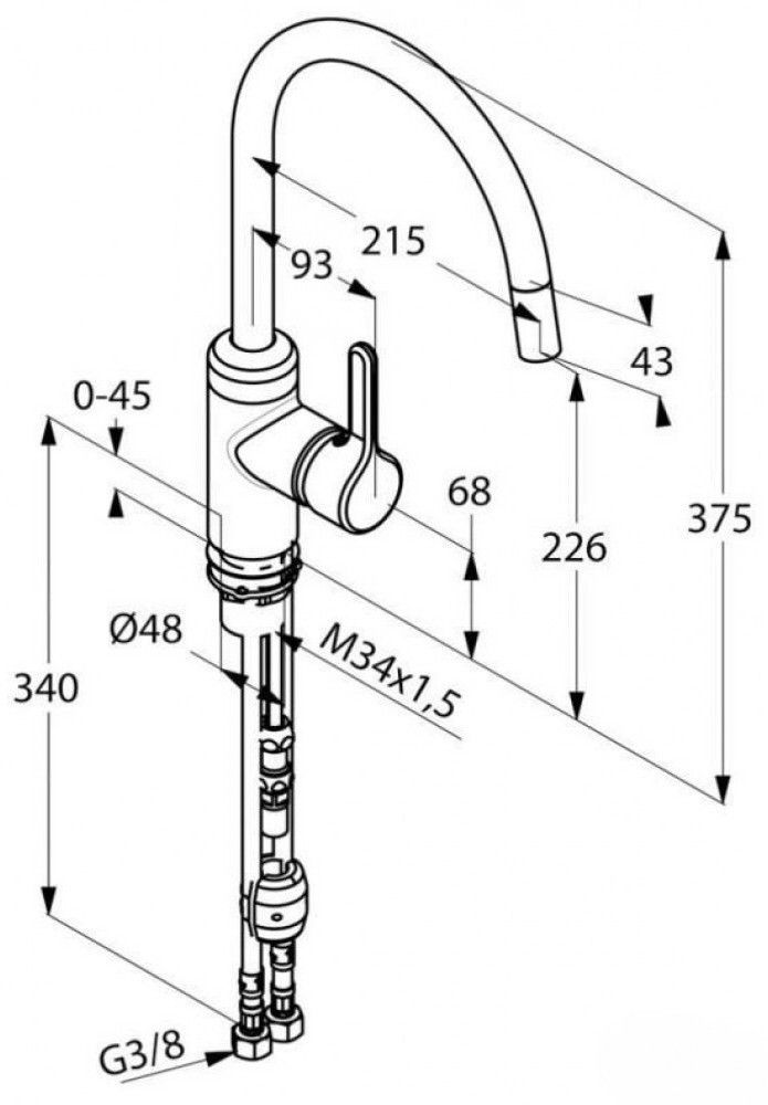 - Высота смесителя:37