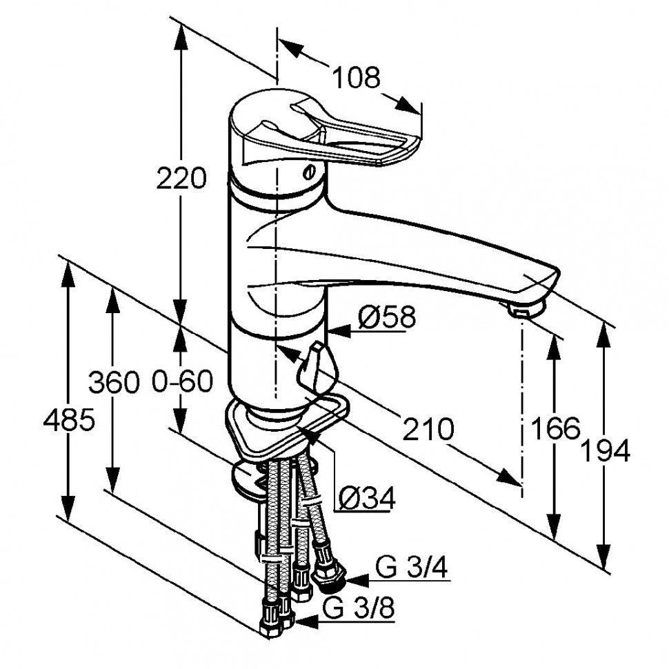 - гибкая подводка G 3/8