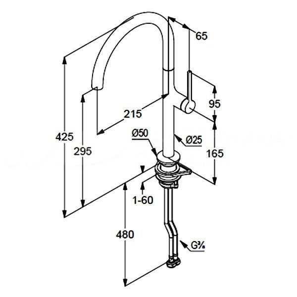 • Длина излива: 21.5 см