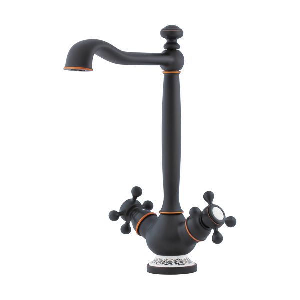 • Эксклюзивный классический дизайн, уникальное исполнение с добавлением керамического элемента с восточным орнаментом; • Цвет: 011.Античная Бронза; • Высокий излив обеспечивает максимально удобное использование смесителя; • Высококачественная латунь сохранит воду чистой и здоровой; • Аэратор произведен из пластика, благодаря чему на нем никогда не появится известкового налета и ржавчины; • Коробка внутри проложена поролоном, который обеспечит сохранность изделия при транспортировке; • Полный набор креплений, соединительных шлангов, подробная инструкция и гарантийный талон в комплекте.