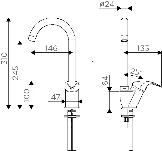 - Высота смесителя:31