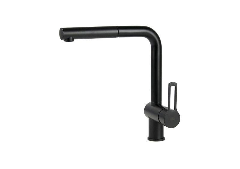 Смеситель для мойки с поворот.изливом и выдвижным 1 режим.душем из ABS, Черный матовыйСмеситель для кухни Paffoni Ringo RIN185NO.ВНИМАНИЕ! В монтажной схеме указан европейский стандарт подводки 3/8, мы предлагаем комплект, адаптированный к российским условиям, со стандартом подводки 1/2.Комплектация: