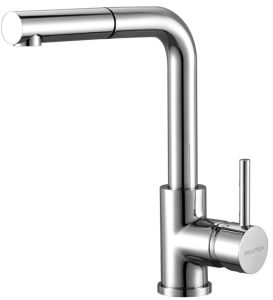 Смеситель для кухни с выдвижным шлангом, Ka214311-CRИзготовлен из высококачественной латуни, которая отвечает высочайшим европейским стандартам качества, не содержит свинца, не разрушается со временем и безопасна для здоровья.Вытяжной шланг
