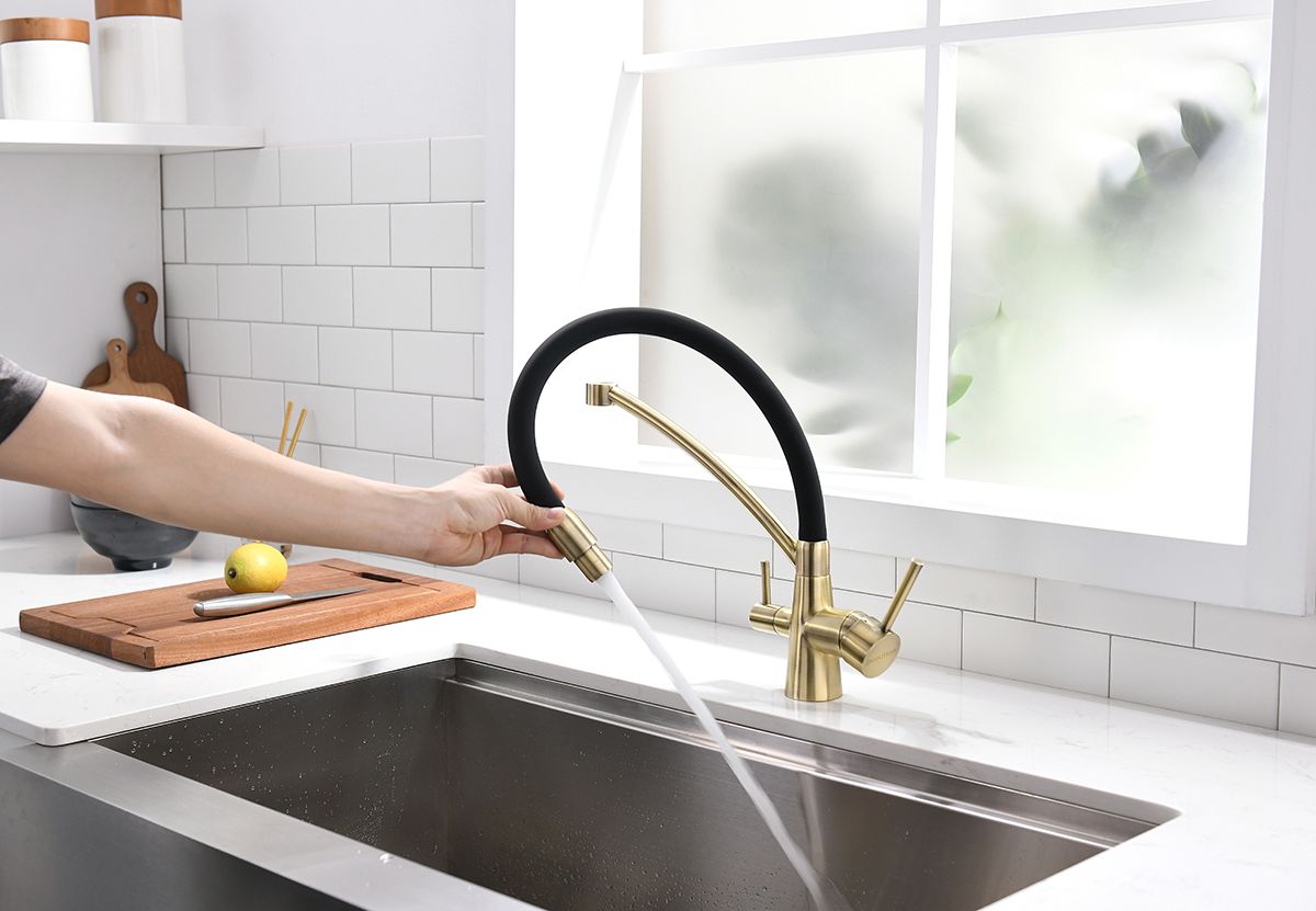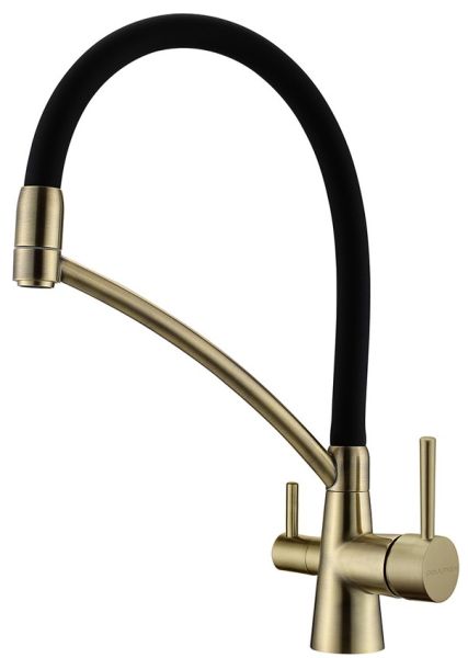 Смеситель под фильтр с гибким изливом, артикул Si213111-BRСмеситель для кухни однорычажный, с возможностью подключения фильтра питьевой воды, эластичный излив, керамический картридж 35 мм.Материал корпуса - латунь высокого качества. Многослойное, стойкое к истиранию покрытие. Долговечный керамический картридж диаметром 35 мм. Эластичный излив. Съемный пластиковый аэратор, который обеспечивает мягкую струю, ровный и экономичный поток воды. Простой монтаж, стандартное подключение.