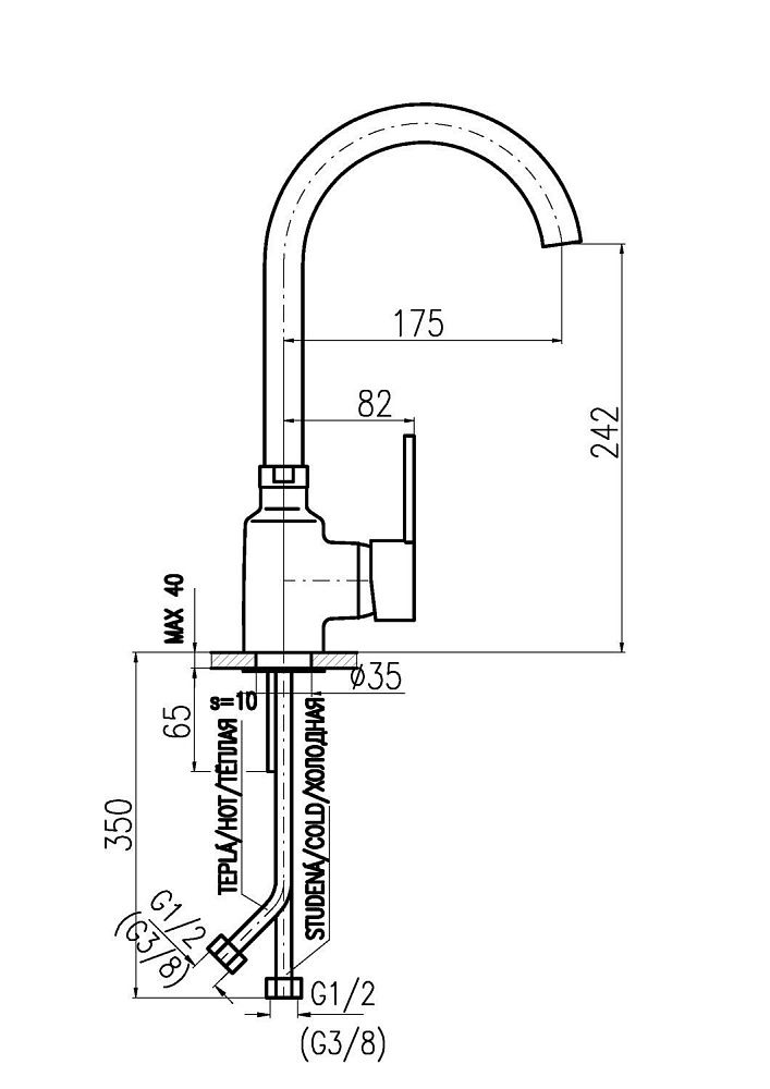 - Длина излива, см:17.5
