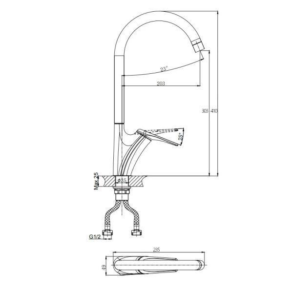 Высота смесителя:41