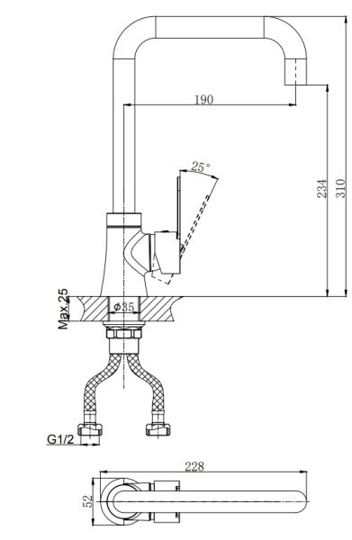 Смеситель для кухни RUSH арт. TE2835-23 с поворотным изливом с металлической ручкой из коллекции Tenerife изготовлен из высококачественной латуни и имеет рычажное управление.В смеситель установлен картридж D-35 с керамическими пластинами. Высота смесителя 310 мм. Излив поворотный 190 мм. Высота излива до аэратора 234 мм. Аэратор изготовлен из пластика с нержавеющим корпусом.В комплекте универсальная присоединительная группа для установки на горизонтальную поверхность, гибкая подводка с латунными гайками 40 см - 2шт, фум-лента, индивидуальный пакет, паспорт, гарантийный талон.