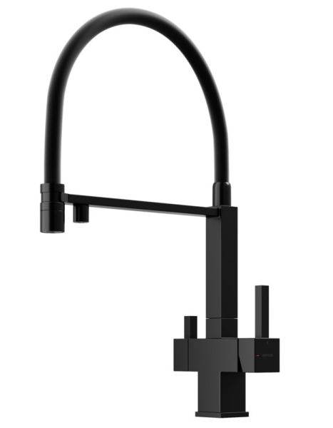 Смеситель для кухни SANCOS Moro с гибким изливом и возможностью подключения фильтра для воды, цвет матовый черный, арт. SC4006MBФункция "Холодный старт" - при включении смесителя активируется холодной поток, для экономии горячей водыАэратор, гибкая подводка, ключ и крепления для монтажа