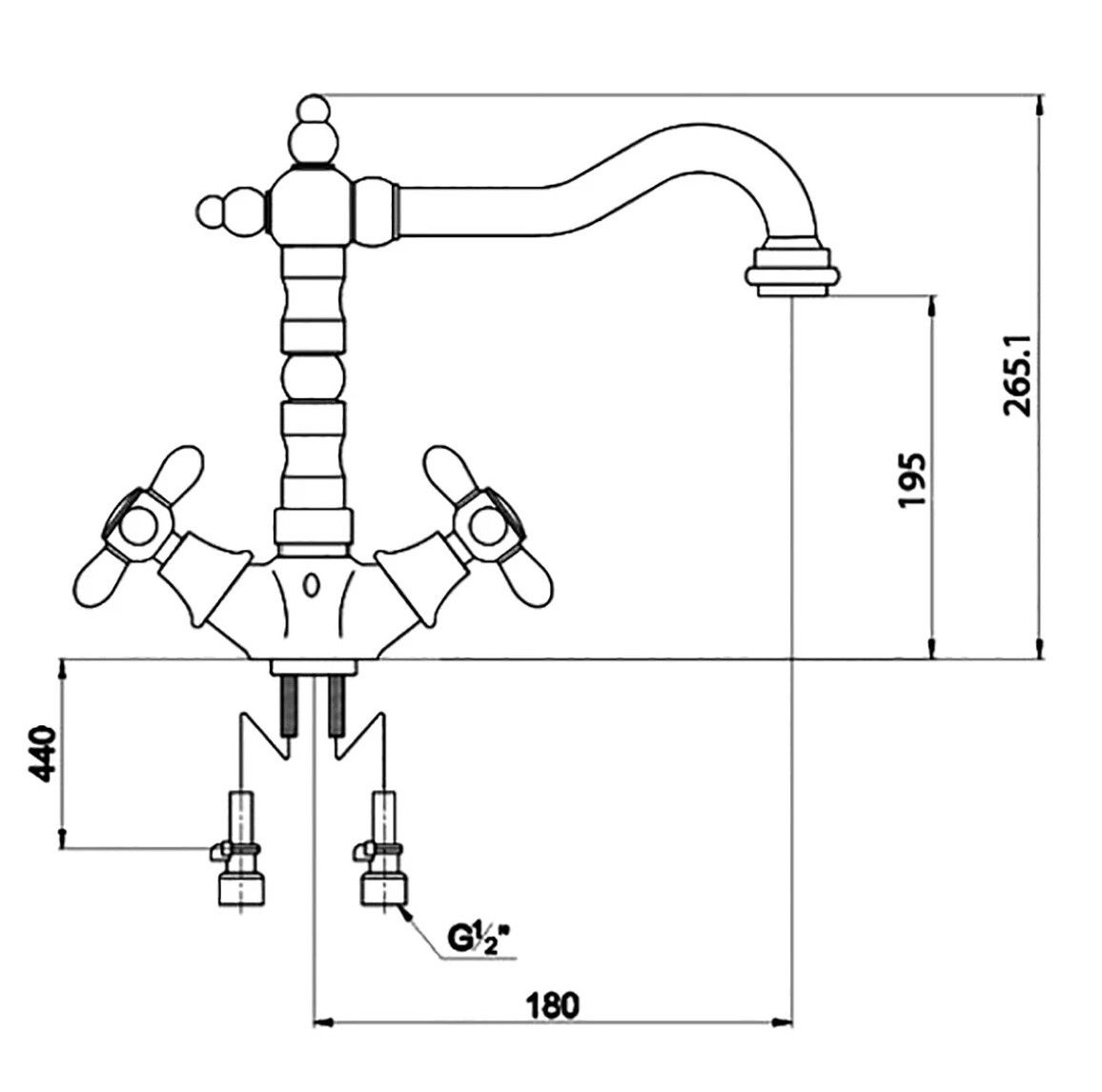 Смеситель для кухонной мойки Timo Ritz (0143FK chrome+gold) В комплект входит: Смеситель-1шт. Гибкая подводка-2шт. Набор креплений-1шт. Инструкция-1шт