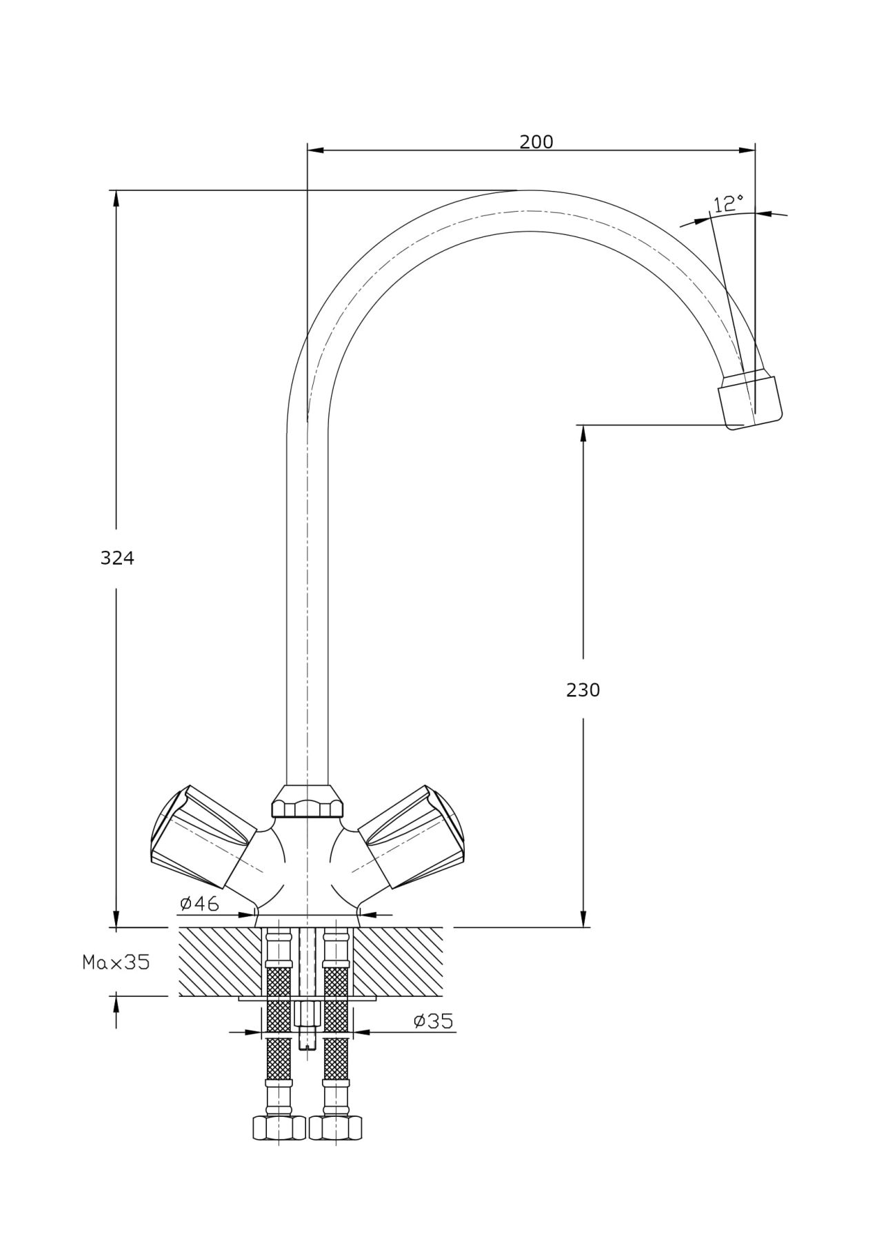- Высота смесителя:32.4