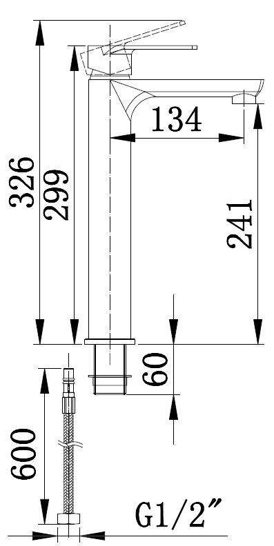 • Высота смесителя: