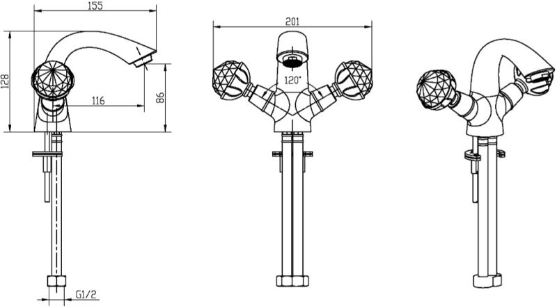 Смеситель Boheme Imperiale Presente 331 для раковины то, что нужно в современном интерьере. Смеситель Boheme Imperiale Presente дополнит вашу раковину комфортом и уютом. Особенностью двухвентильных смесителей является наличие двух раздельных вентилей для регулирования холодной и горячей воды.Латунь, кристаллы Swarovski из которой произведен смеситель Boheme Imperiale Presente 331 отличается высокой прочностью и произведена без использования вредных компонентов. Излив смесителя Boheme 331 длиной 11.6 см и высотой 8.6 см обеспечит идеальное и комфортное использовании при принятии водных процедур. Излив Boheme Imperiale Presente так же оснащен функцией вращения, что значительно упростит использование смесителя. Конструкция модели Boheme Imperiale Presente позволяет отлично установить смеситель на раковину. Смеситель для раковины Boheme 331 выполнен в стиле ретро, что отлично прослеживается в его форме. Родина бренда Boheme – Италия, все смесители произведены с высокой точностью и грамотностью технологического процесса. Смеситель Boheme Imperiale Presente 331 для раковины отличная покупка для вашей ванной комнаты.