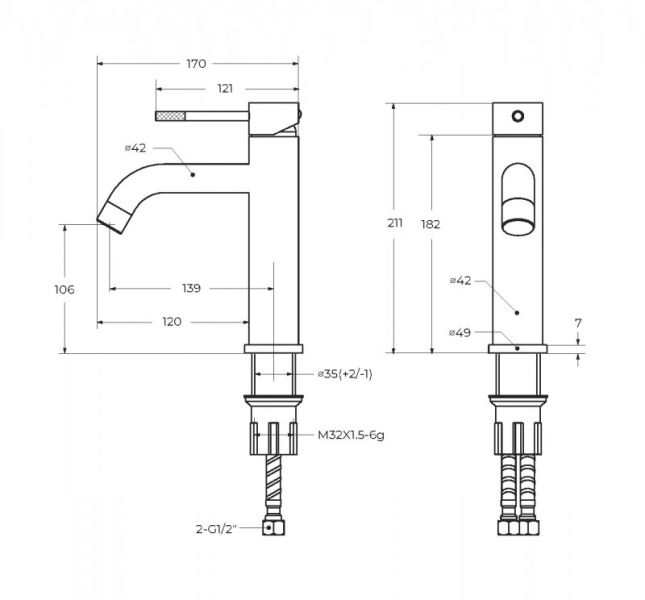 • Высота смесителя:
