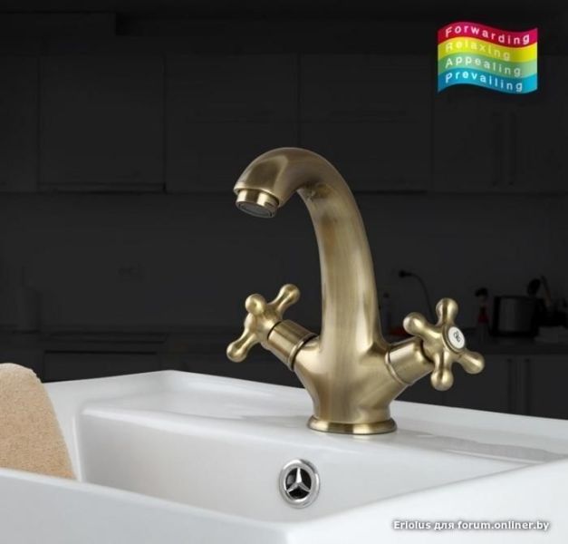 Смеситель для умывальника Gappo Sofia G1063-4 - двухвентильный, излив оснащен аэратором для смягчения потока и экономичного расходования воды. Корпус изготовлен из латуни с бронзовым покрытием.
