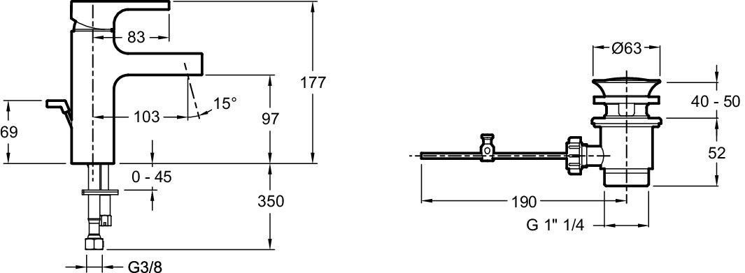 Смеситель для раковины Jacob Delafon STRAYT E37327-CP.Вес:2.8 кг