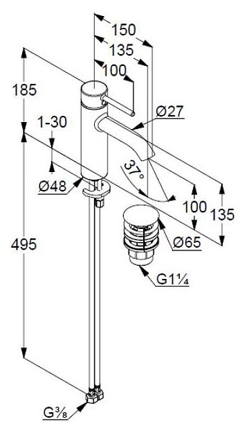 - однорычажный смеситель на умывальник 100 DN 15