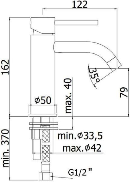 Смеситель для раковины без д/к, Steel lookingСмеситель для раковины Paffoni Light LIG071ST.ВНИМАНИЕ! В монтажной схеме указан европейский стандарт подводки 3/8, мы предлагаем комплект, адаптированный к российским условиям, со стандартом подводки 1/2.Комплектация: