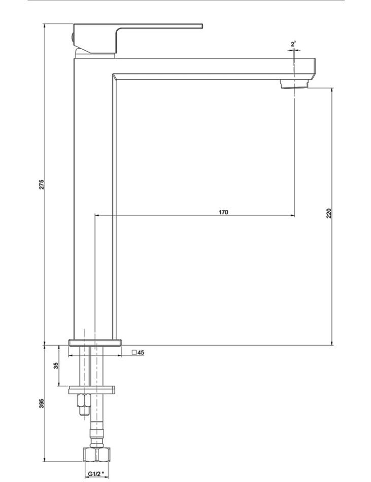 • Высота смесителя:
