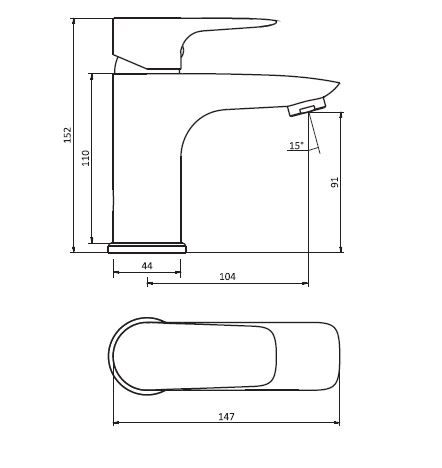 Высота смесителя 152 мм;