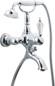 Смеситель Boheme Brillante Ripresa 343 для ванны с душем отлично подойдет в вашу ванную комнату и дополнит интерьер. На ванну безупречно впишется смеситель Boheme Brillante. Благодаря удобной конструкции однорычажных моделей, процесс регулировки температуры воды и интенсивность струи можно произвести одной рукой без особых усилий.Латунь, керамика, кристаллы Swarovski использованная в конструкции смесителя Boheme Brillante 343 соответствует всем необходимым стандартам качества и является абсолютно безвредной для здоровья. длина излива 17.4 см - это оптимальные параметры у смесителя Boheme 343, предотвращающие разбрызгивание. Излив Boheme Brillante так же оснащен функцией вращения, что значительно упростит использование смесителя. Конструкция модели Boheme Brillante позволяет великолепно установить смеситель на стену. Смеситель для ванны Boheme 343 выполнен в стиле ретро, что восхитительно прослеживается в его форме. Марка Boheme, родиной которой, является Италия, создает смесители качества с высокотехнологичного оборудования, благодаря чему смесители отличаются долговечностью и надежностью. Смеситель Boheme Brillante Ripresa 343 для ванны с душем это незаменимый элемент для создания уюта и комфорта в ванной.