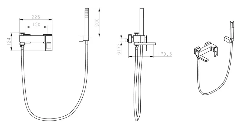 Смеситель Boheme Q для ванны, с душевым гарнитуром, черный, 143-BB.2