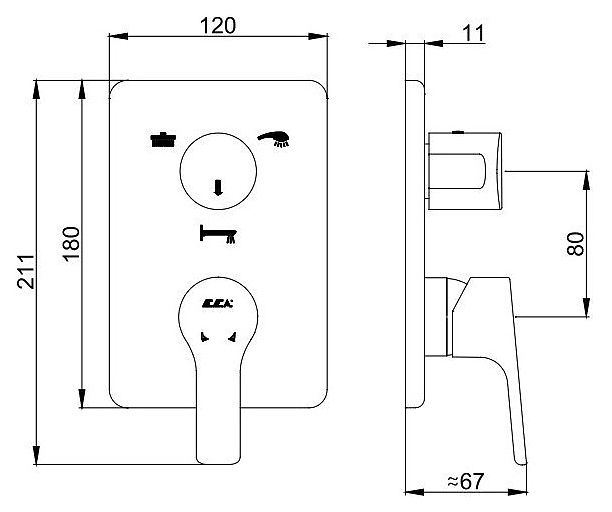 Смеситель для ванны и душа E.C.A. Luna 102167206EX-KDE хром Смеситель для ванны и душа E.C.A. Luna 102167206EX-KDE хром Казань 2426.11 {old_price} E.c.a.