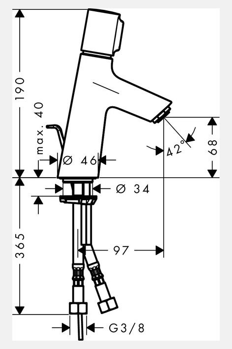 • Высота смесителя: