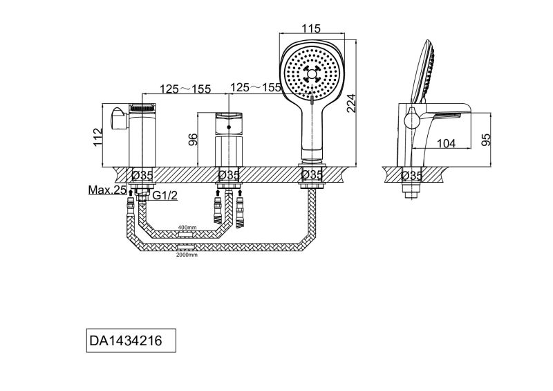 Смеситель на борт ванны DQ Berlin Technische чёрный/хром DA1434215 купить
