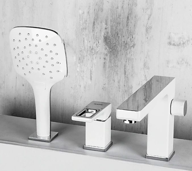 Смеситель на борт ванны Gappo G1117-8 - стильная латунная модель для установки на борт ванны, на 3 отверстия. Оригинальный излив, управление однорычажное, гибкая подводка воды, удобная душевая лейка. Цвет - белый.