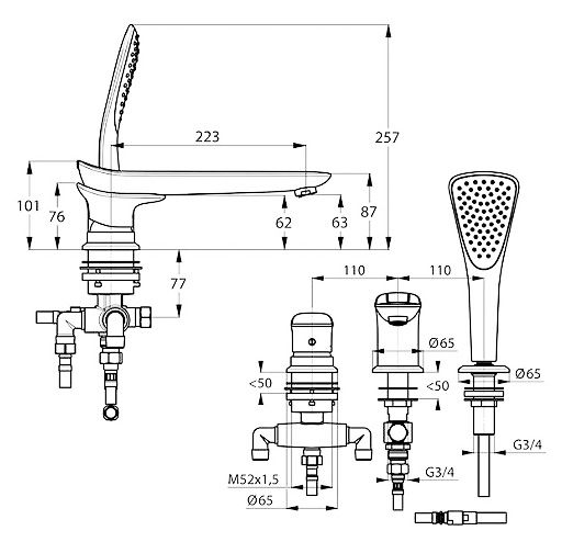 • ванна: расход воды 24 л/мин при давлении 3 бара