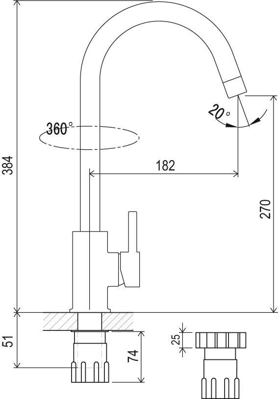 • подходит: к кухонной мойке или большому умывальнику