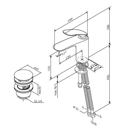 • Высота смесителя: