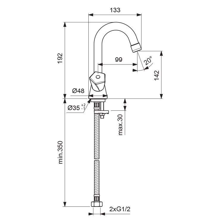 • Высота смесителя: