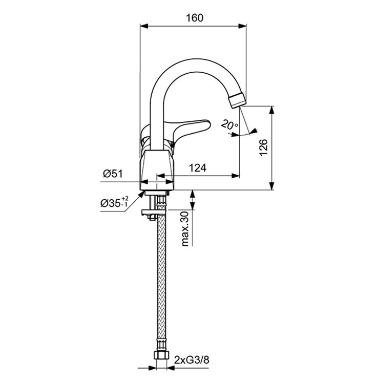• Высота смесителя: