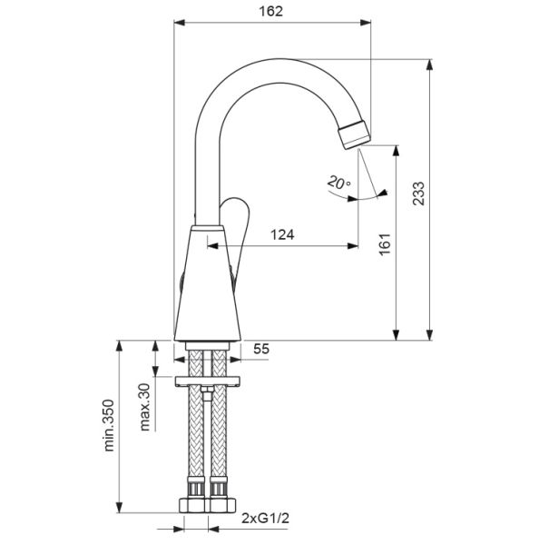 ORION Смеситель для умывальника, рукоятка сбоку.