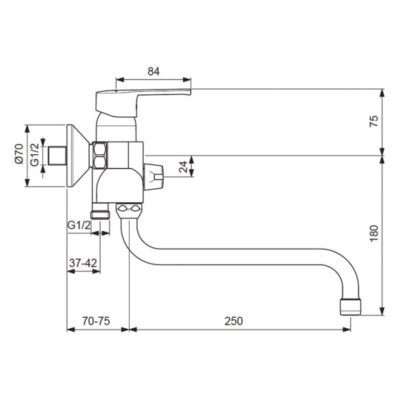 Длина излива, мм: 250