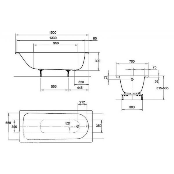 Классическая прямоугольная стальная ванна Kaldewei Eurowa 150x70 с толщиной стенок 2.5 мм - отражение стилистических черт элегантной классики. Строгая прямоугольная форма изделия в сочетании с плавными линиями чаши может стать органичной составляющей как классического интерьера, так и помещения, оформленного в стиле хай-тек. Эргономичное внутреннее пространство модели позволяет с комфортом разместиться в ней и получить максимум удовольствия от водных процедур. При этом не предъявляя строгих требований к сочетанию с другой сантехникой и мебелью. Ножки приобретаются отдельно